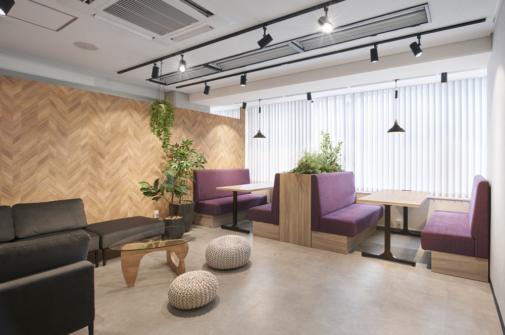 - おしゃれで写真映え抜群!紫と天然カラーに彩られたオフィスデザイン事例