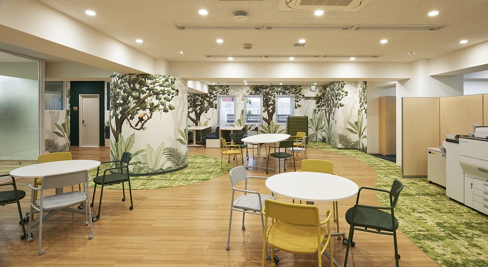 おしゃれな装飾でボタニカルガーデンを表現したオフィスデザイン事例