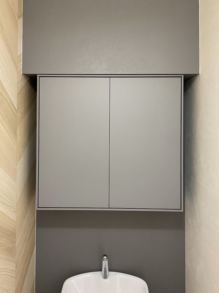 上部にあった分電盤も、壁のダークグレーに合わせて塗装しました。