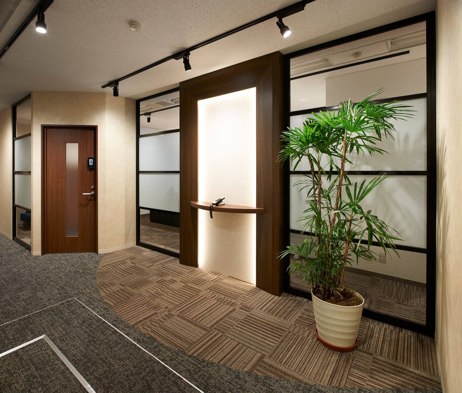 今回は3社でのコンペだったのですが、弊社からご提案した「エントランスから応接室に続く、お客様を迎えお通しするまでのデザインストーリー」がわかりやすかった、とのことで、採用いただきました。